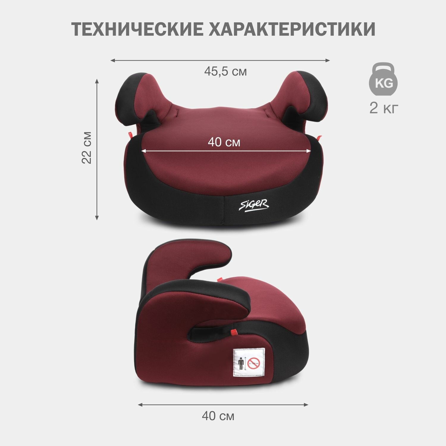 Бустер автомобильный Siger Booster Fix от 22 до 36 кг, цвет маренго