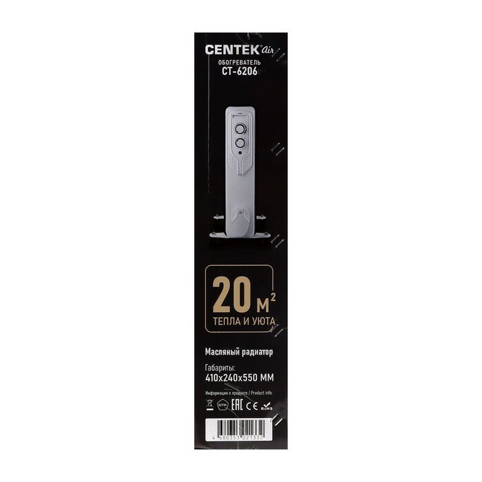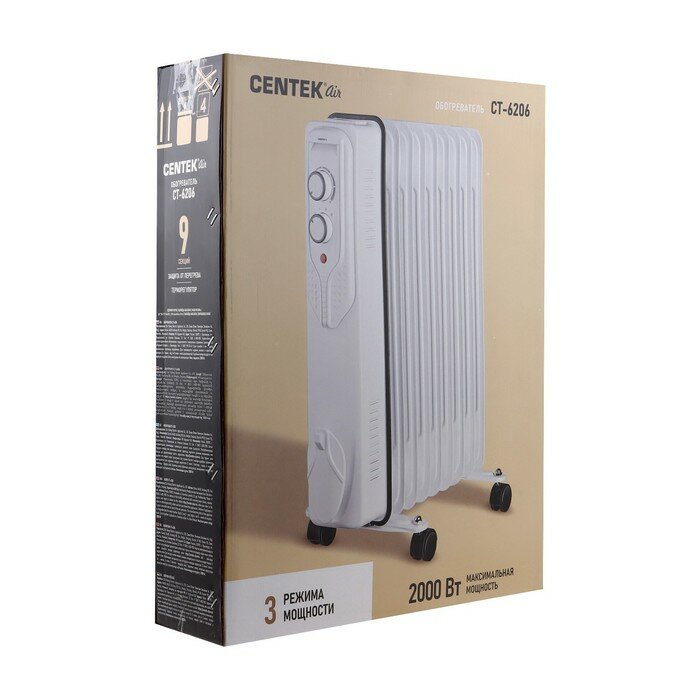 Купить Обогреватель электрический масляный CENTEK CT-6206: белый, 9 секций, 20м2, 2000Вт, 3 режима, защита от перегрева, терморегулятор, LED-индикатор