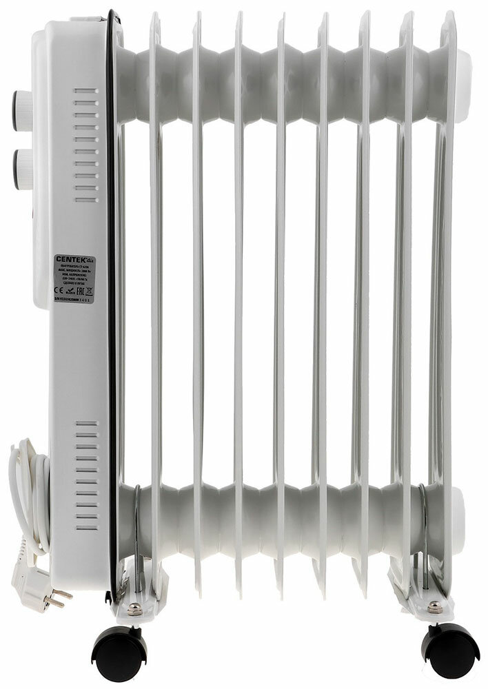 Обогреватель электрический масляный CENTEK CT-6200: белый, 7 секций, 15м2, 1500Вт, 3 режима, защита от перегрева, LED-индикатор
