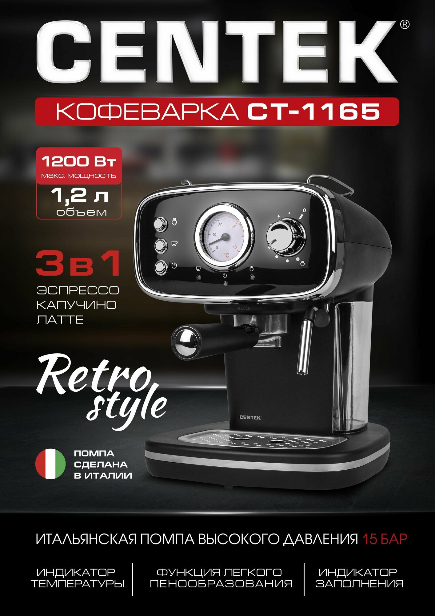 кофеварка centek ct-1160 black /капучино/эспрессо