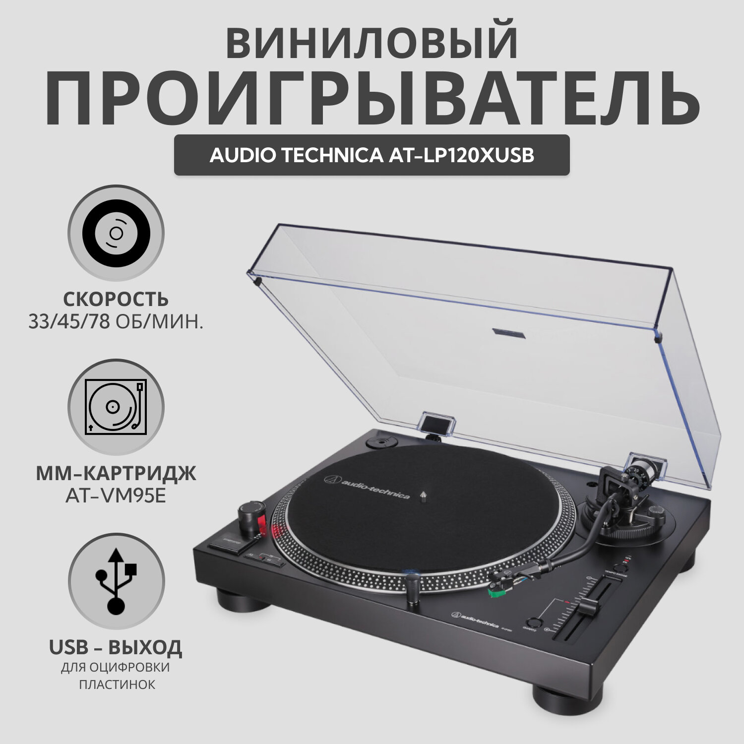 Проигрыватель винила с прямым приводом Audio-Technica AT-LP120XUSBSV