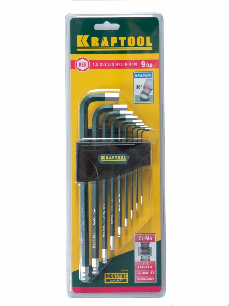 Набор ключей Kraftool 27445-H9 industrie длин. шарик cr-mo сталь(s2) hex1.5-10мм 9шт 27445-H9