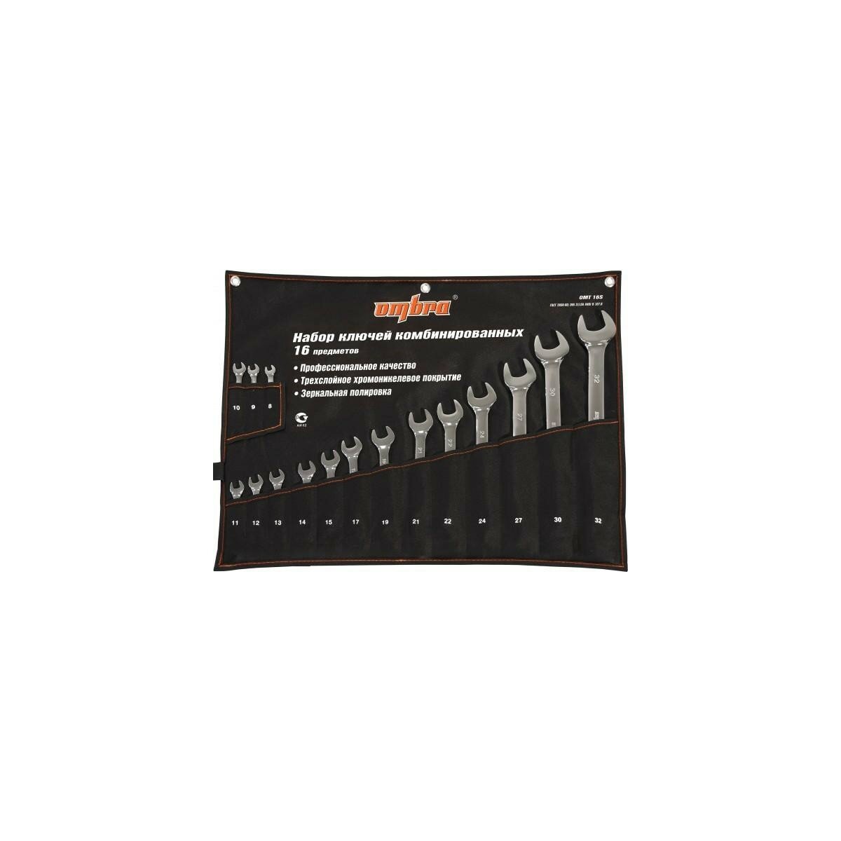 Набор ключей комбинированный, OMT16S, 16 предметов, Ombra, 8-32 мм, сумка, 55009