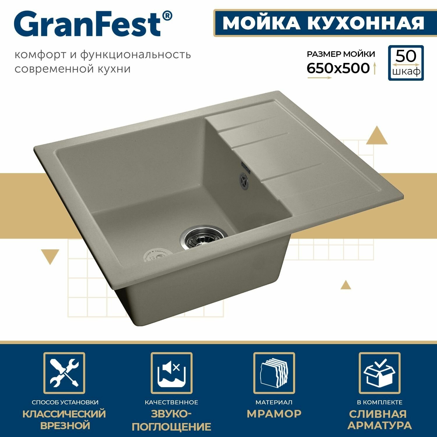 Кухонная мойка GranFest Quadro Gf-q-650l бежевый .