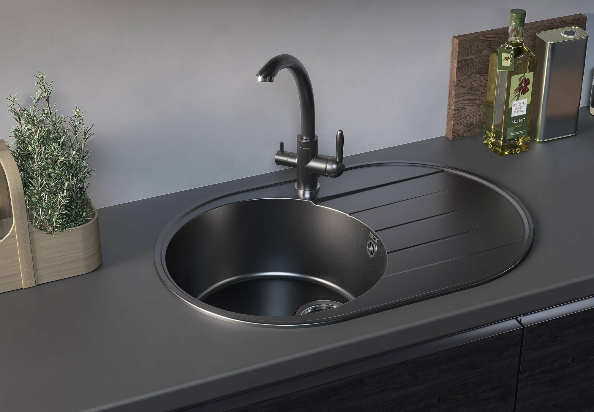 СохранитьМойка кухонная Ulgran из кварцевого композита овальная Quartz Nora, цвет: космос, база: 72.5х47.5 см, арт. Nora 750-08 интересное:
