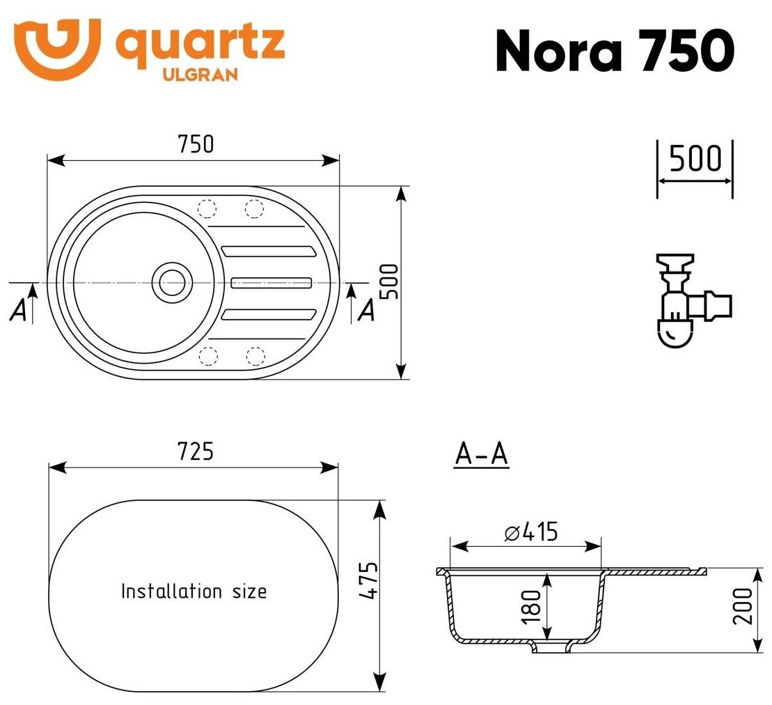 Мойка для кухни кварцевая Ulgran Quartz Nora 750-07, уголь