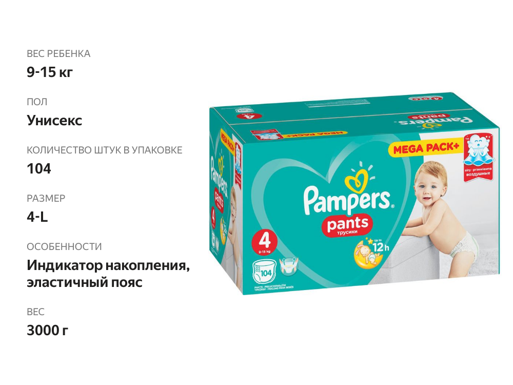 Pampers трусики Pants 4 (9-14 кг), 104 шт., , белый интересное: