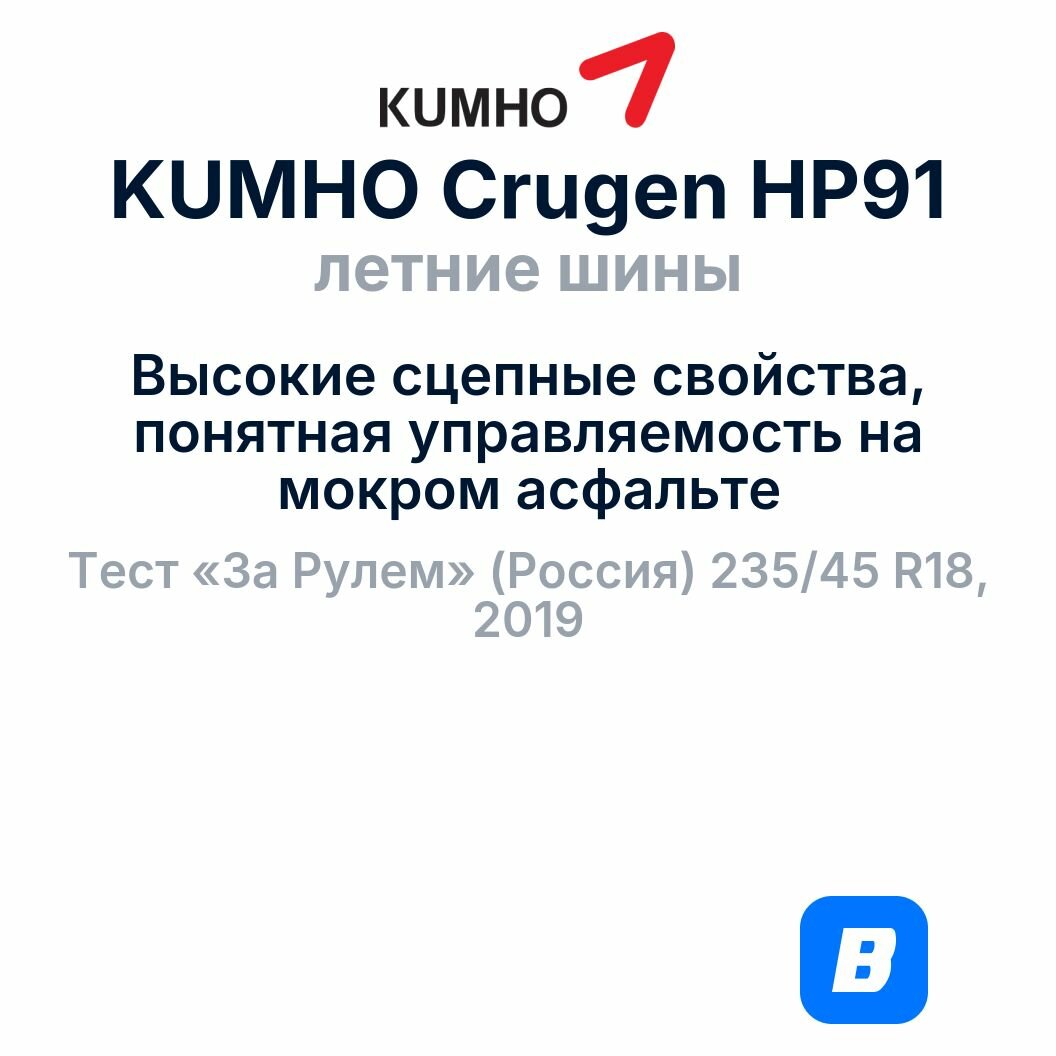 СохранитьШина Kumho(Кумхо) HP-91 275/45 R19 108Y летняя интересное: