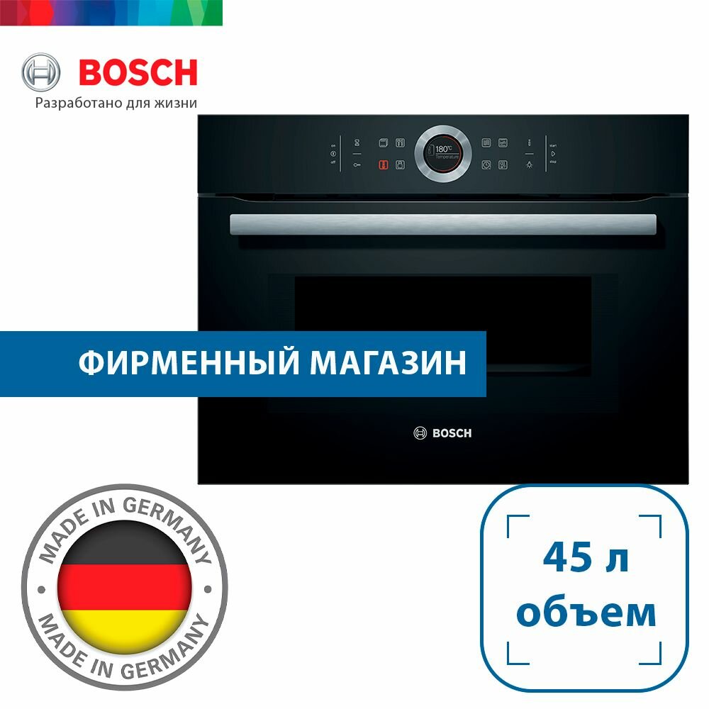 Компактный электрический духовой шкаф с СВЧ Bosch CMG633BB1 (чёрный)