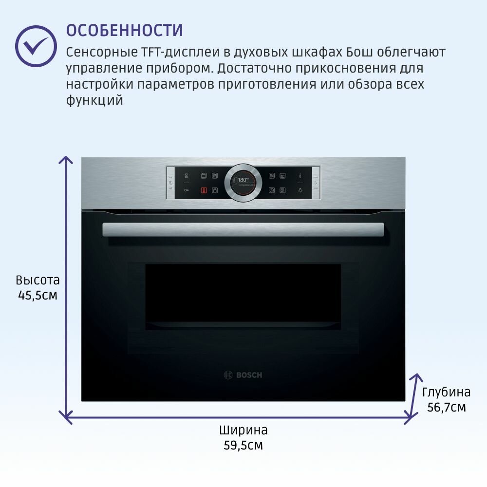 СохранитьДуховой шкаф электрический Bosch CMG633BS1, нержавеющая сталь интересное: