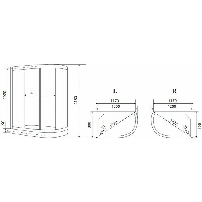 Душевая кабина Timo (Тимо) TE-0702 R угловая с низким поддоном, стеклянная, размер 120х80 см, правая