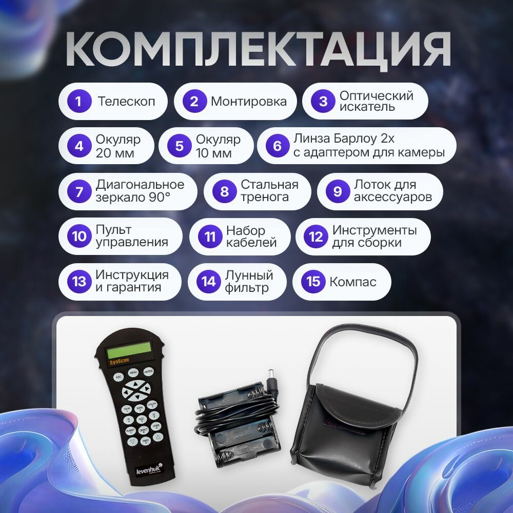 | Дополнительная информация | система управления и автоматического наведения SynScan AZ; скорости слежения: звездная, лунная, солнечная; режим ведения: по двум… осям; калибровка системы наведения: по яркой звезде, по двум звездам ещёскрыть |