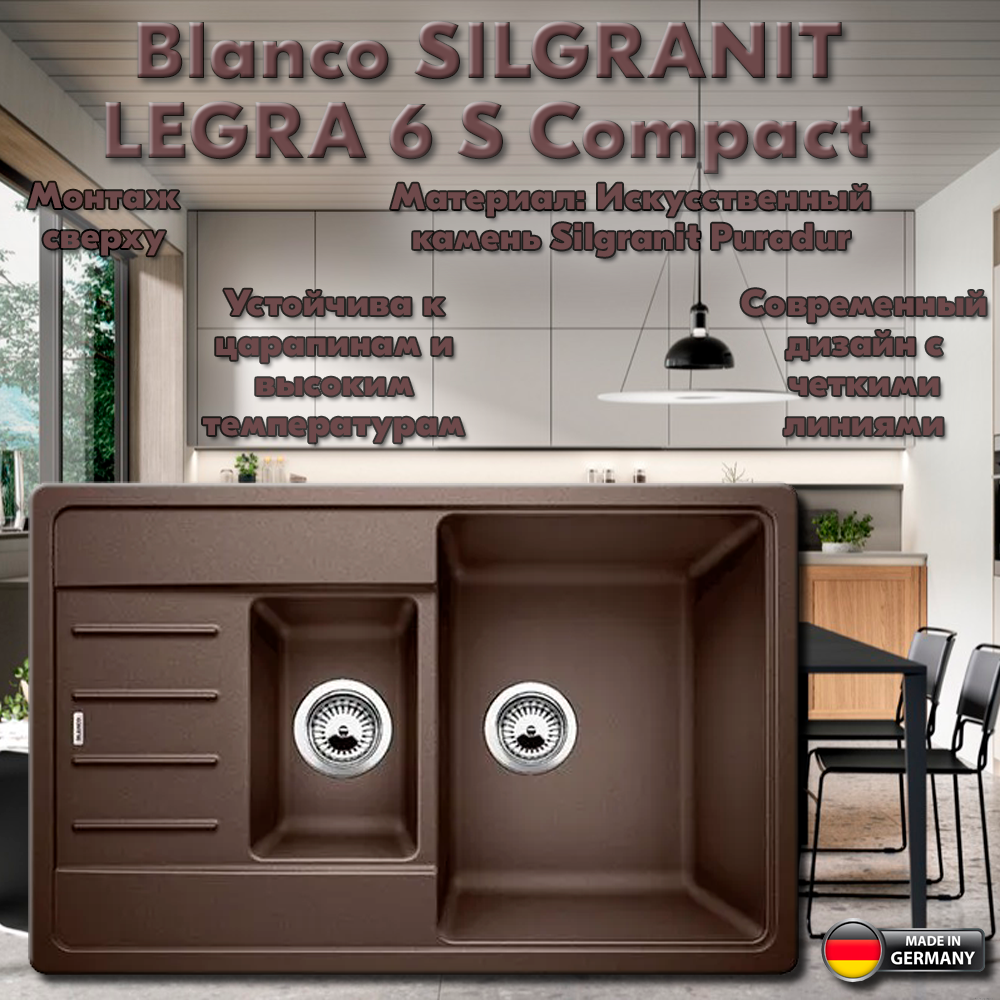 Мойка BLANCO LEGRA 6S COMPACT SILGRANIT кофе 521307