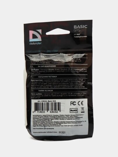 Наушники DEFENDER BASIC 616 проводные, вакуумные, 1,1м, черный