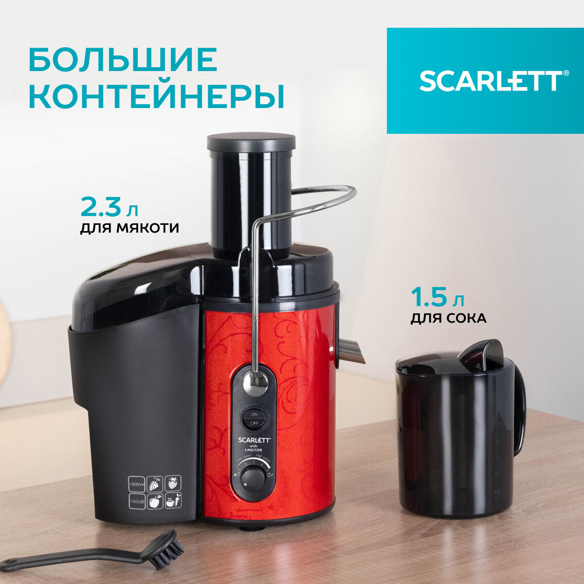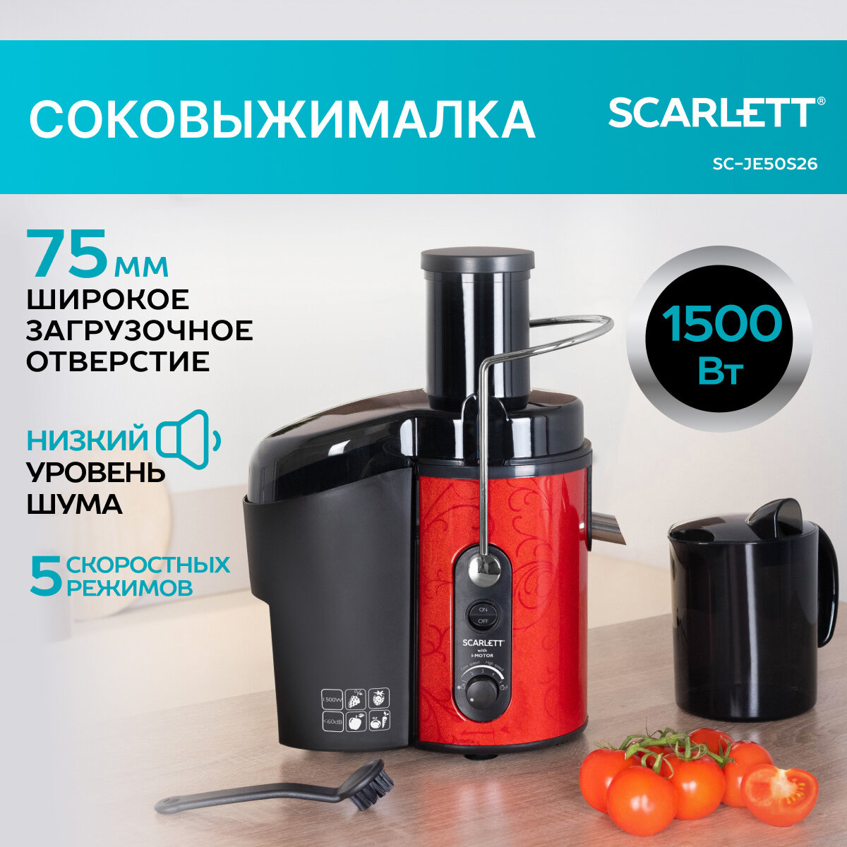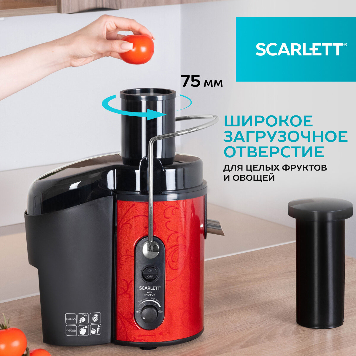 Соковыжималка центробежная Scarlett SC-JE50S26 с широкой горловиной интересное:
