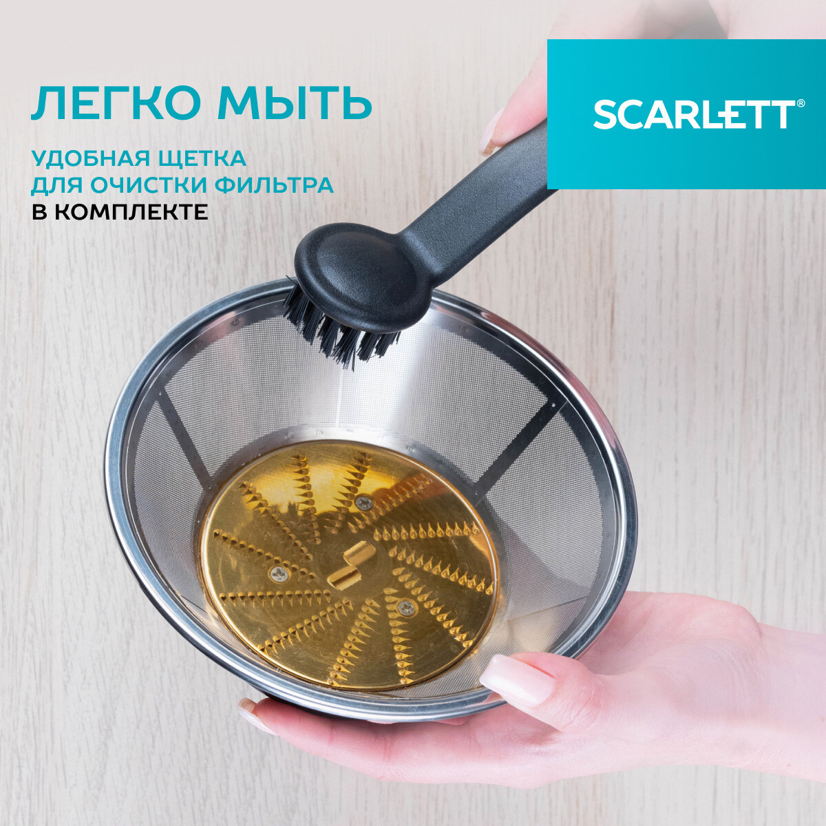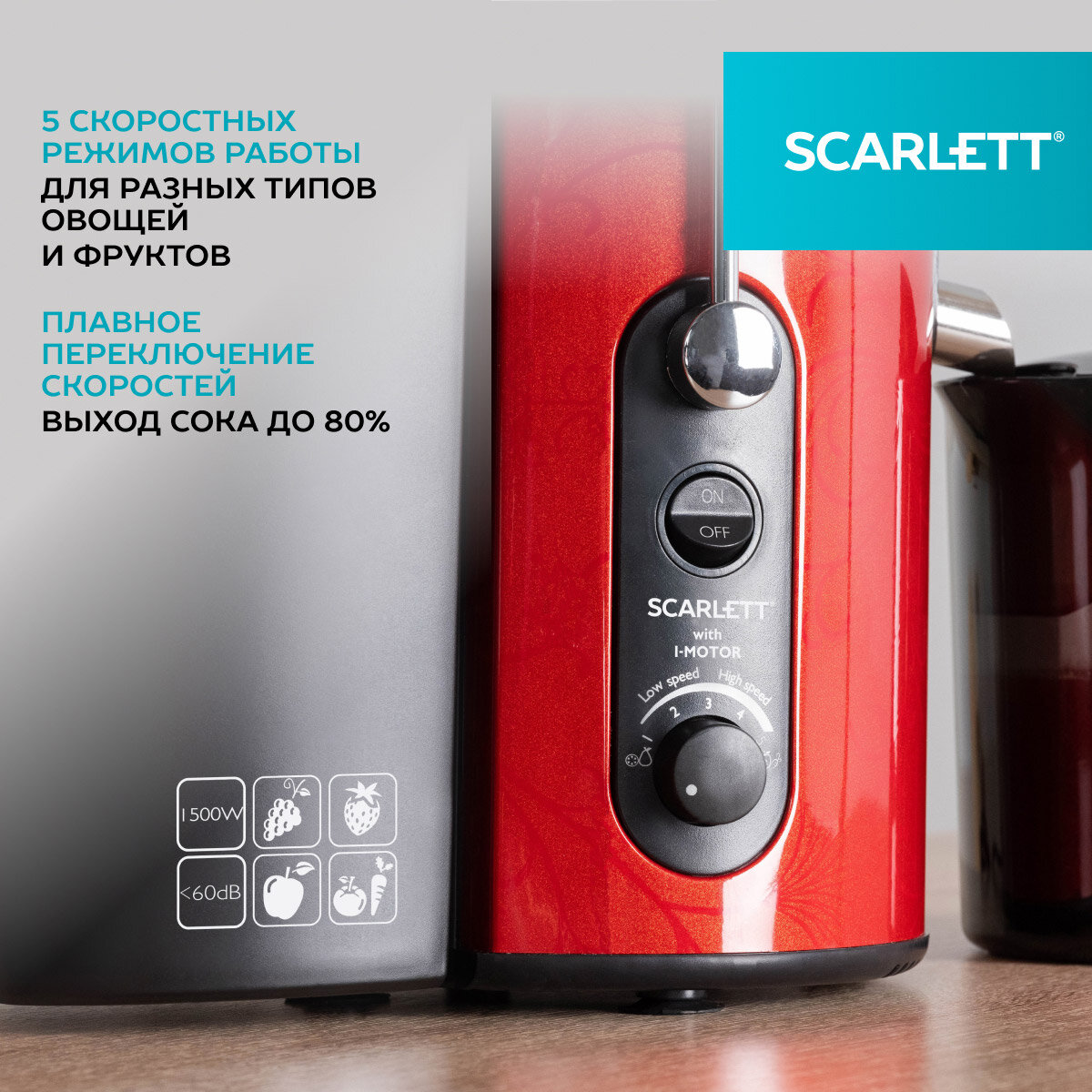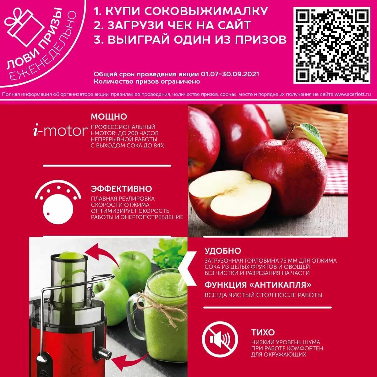 Соковыжималка центробежная Scarlett SC-JE50S26 с широкой горловиной интересное: