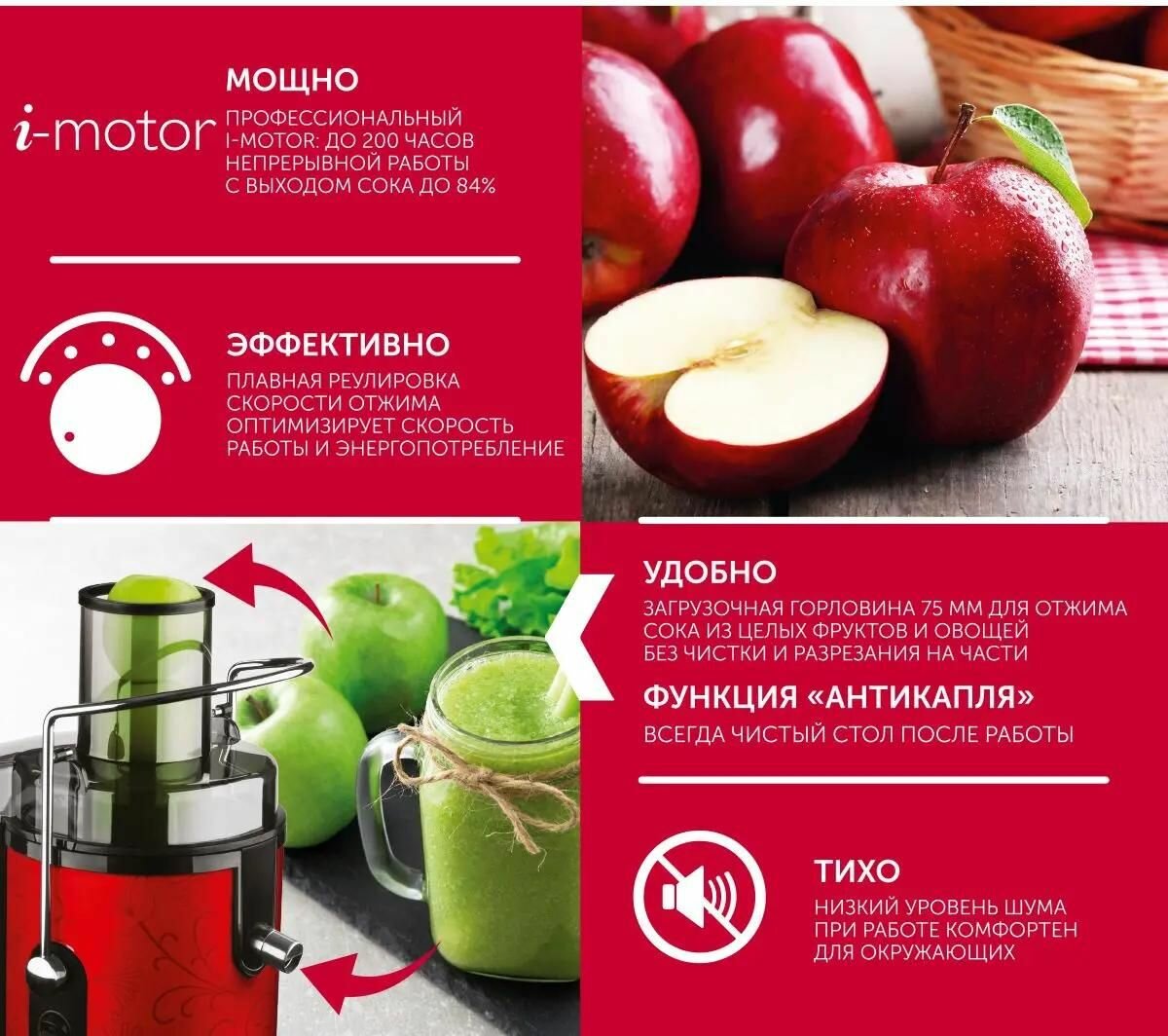 Соковыжималка SCARLETT SC-JE50S26, красный