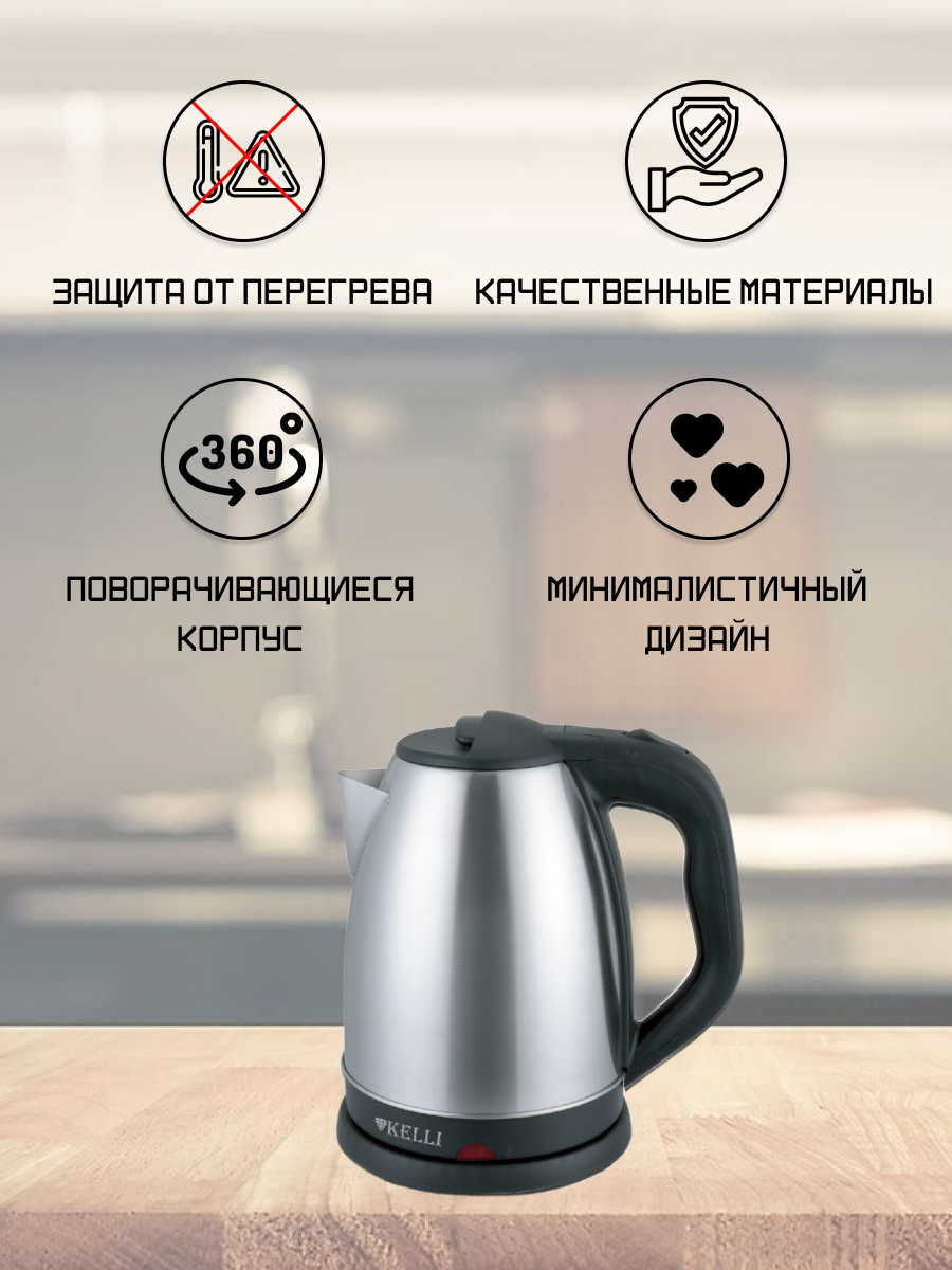 Чайник электрический KELLI KL-1455 1,8 л, серебристый