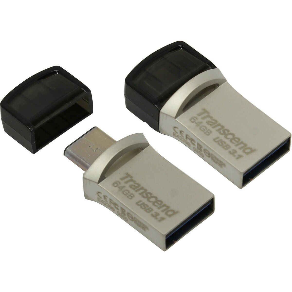 Флешка Transcend 64GB JetFlash 890, USB 3.1/USB Type-C, OTG, Серебряный