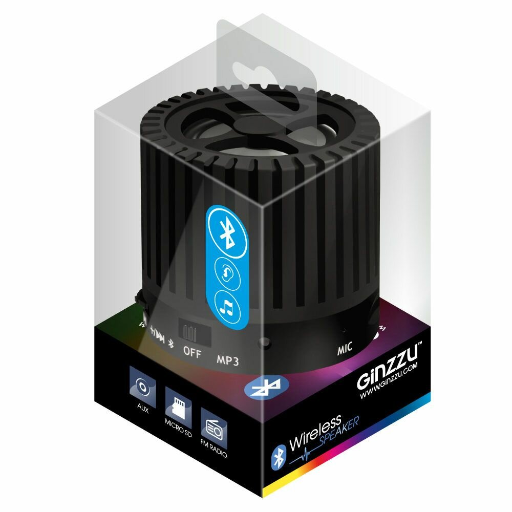 Портативная акустика Ginzzu GM-988, 3 Вт, черный