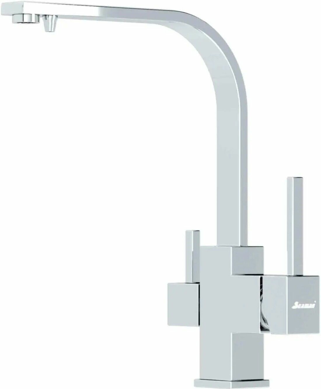 Смеситель для кухни Seaman Barcelone SSL-5390 Water, хром полированный, под фильтр 2в1, хайтек, поворотный, квадратный