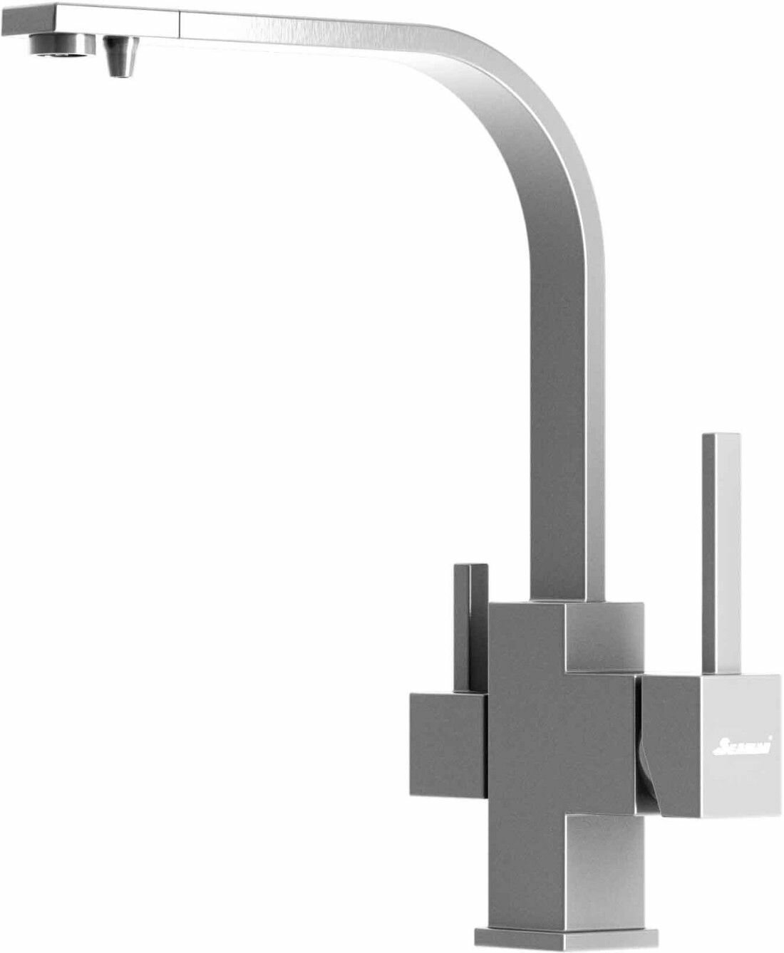 Смеситель для кухни Seaman Barcelone SSL-5390 Water, хром полированный, под фильтр 2в1, хайтек, поворотный, квадратный