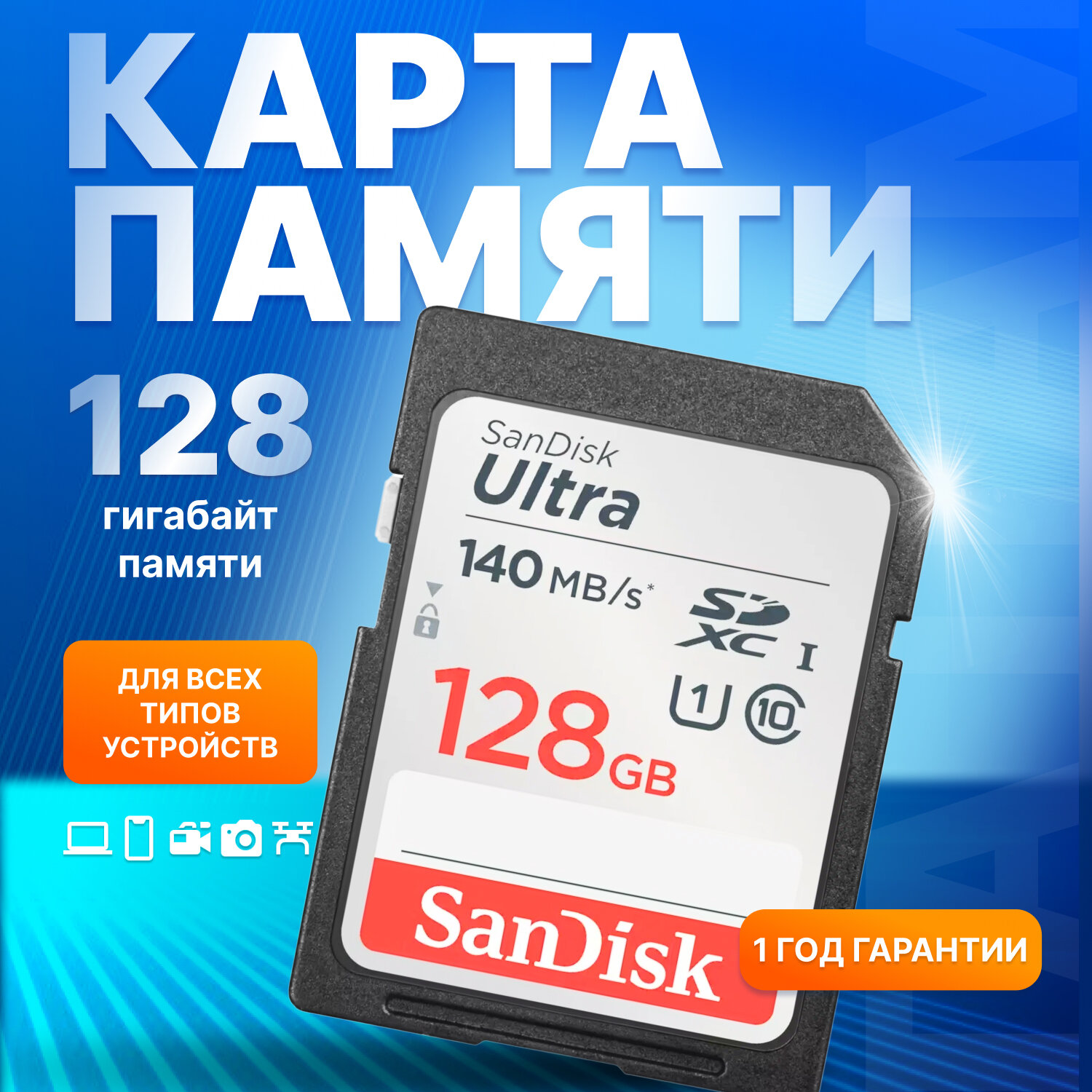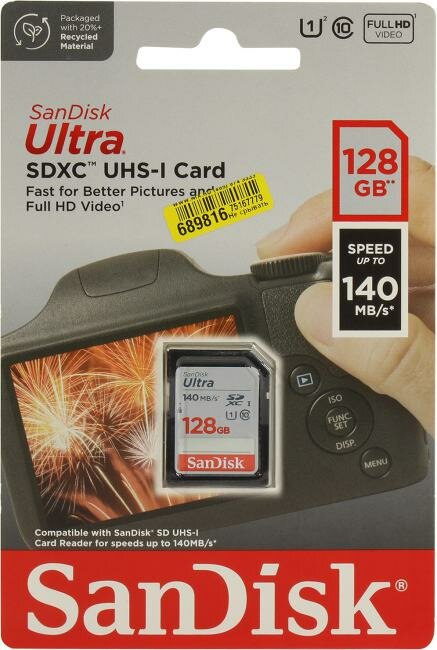 Карта памяти SD 128 ГБ SanDisk Class 10 Ultra