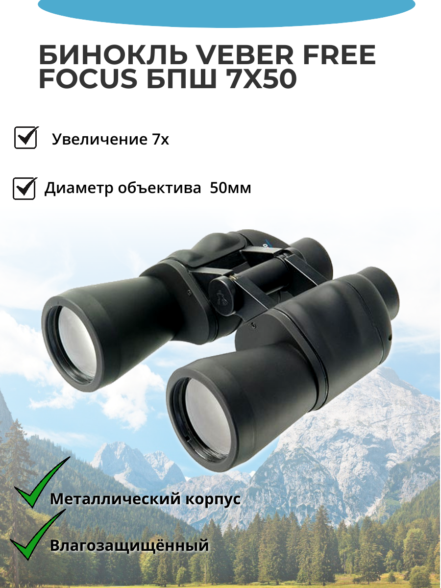 Бинокль Veber Free Focus БПШ 7x50, шт интересное: