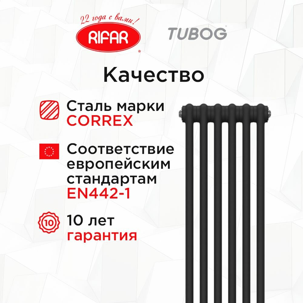 СохранитьРадиатор отопления трубчатый RIFAR TUBOG TUB2057-10-AN, 565х10 секций боковое подключение (антрацит, черный матовый) интересное: