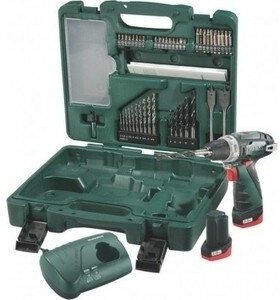 | Плюсы: | Комплектация - два аккумулятора, набор со сверлами и битами, чемоданчик