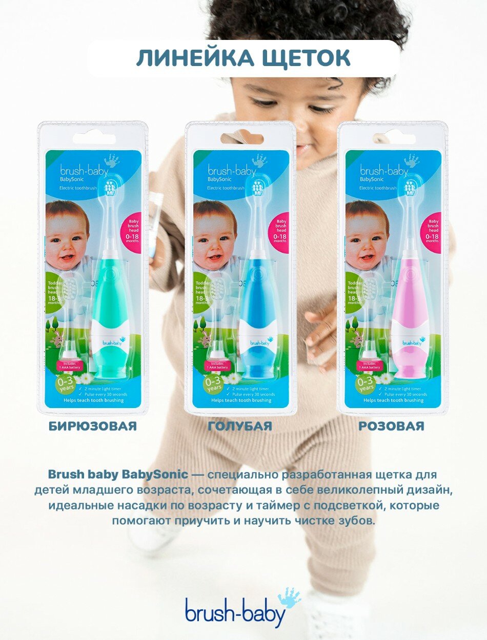 Brush Baby Детская электрическая зубная щетка с насадками BabySonic, бирюзовый