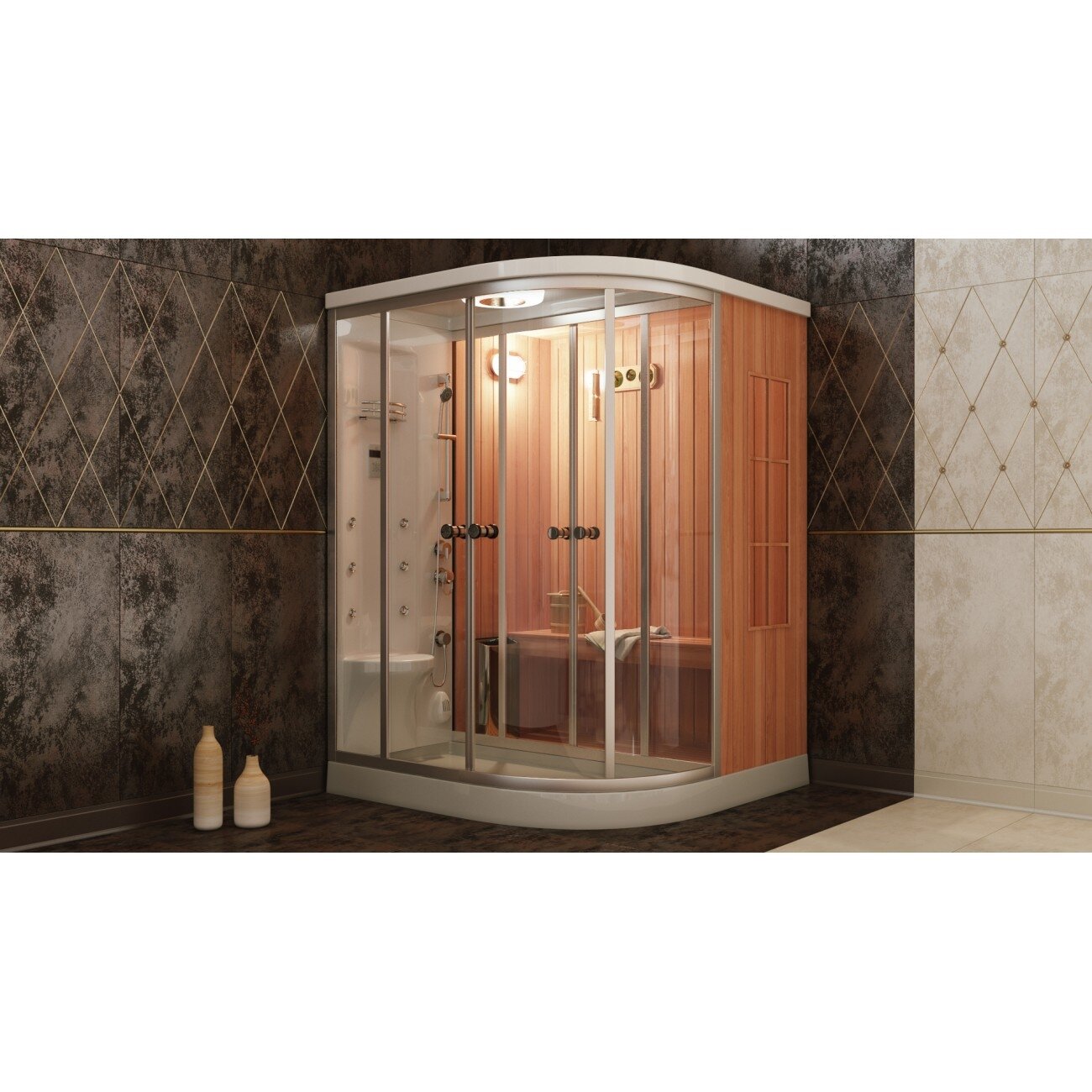 Заказывал сауну вместе с установкой себе в дом. Жена сказала что ей важно чтобы так же мы приобрели душевую кабину! Вот тут и мы с ней и убили двух зайцев! Сауна комбинированная! В ней можно как посидеть в молоке и хорошенько пропариться так и следом перейти в зону душевой кабины и принять душ с приятной музыкой! Я очень доволен покупкой и если потребуется еще одна в мой родной город то я обязательно приобрету её! Спасибо производителю за то что учел абсолютно все детали этого товара! Очень приятно что все таки есть еще на рынке достойные производители на которых можно положиться! |