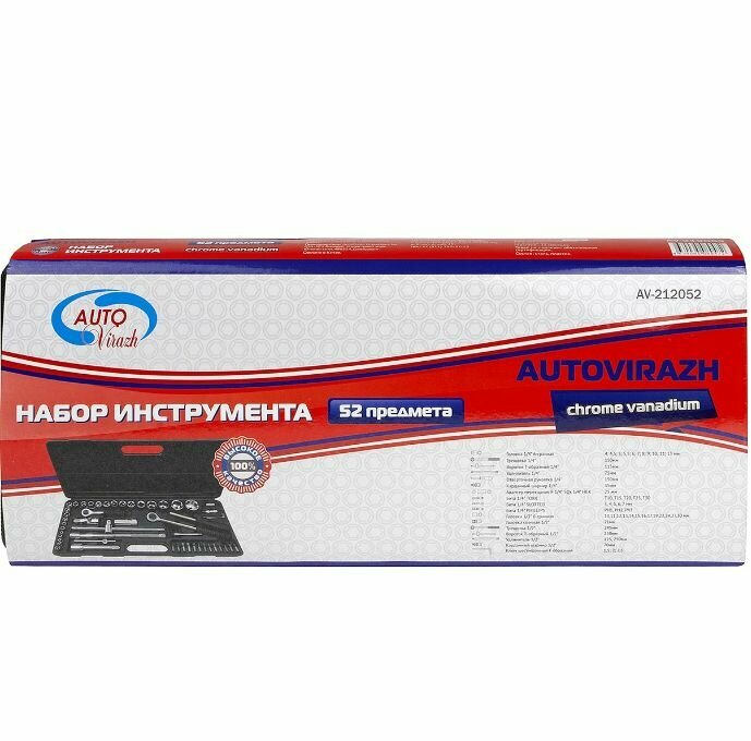 Купить Набор инструментов "AUTOVIRAZH" AV-212052 (1/2", 1/4", 4-30мм, 52 предмета, кейс)