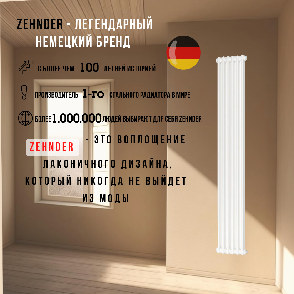 СохранитьТрубчатый радиатор отопления Zehnder Charleston 2180 6 секций, боковое подключение, вертикальный, стальной, белый интересное: