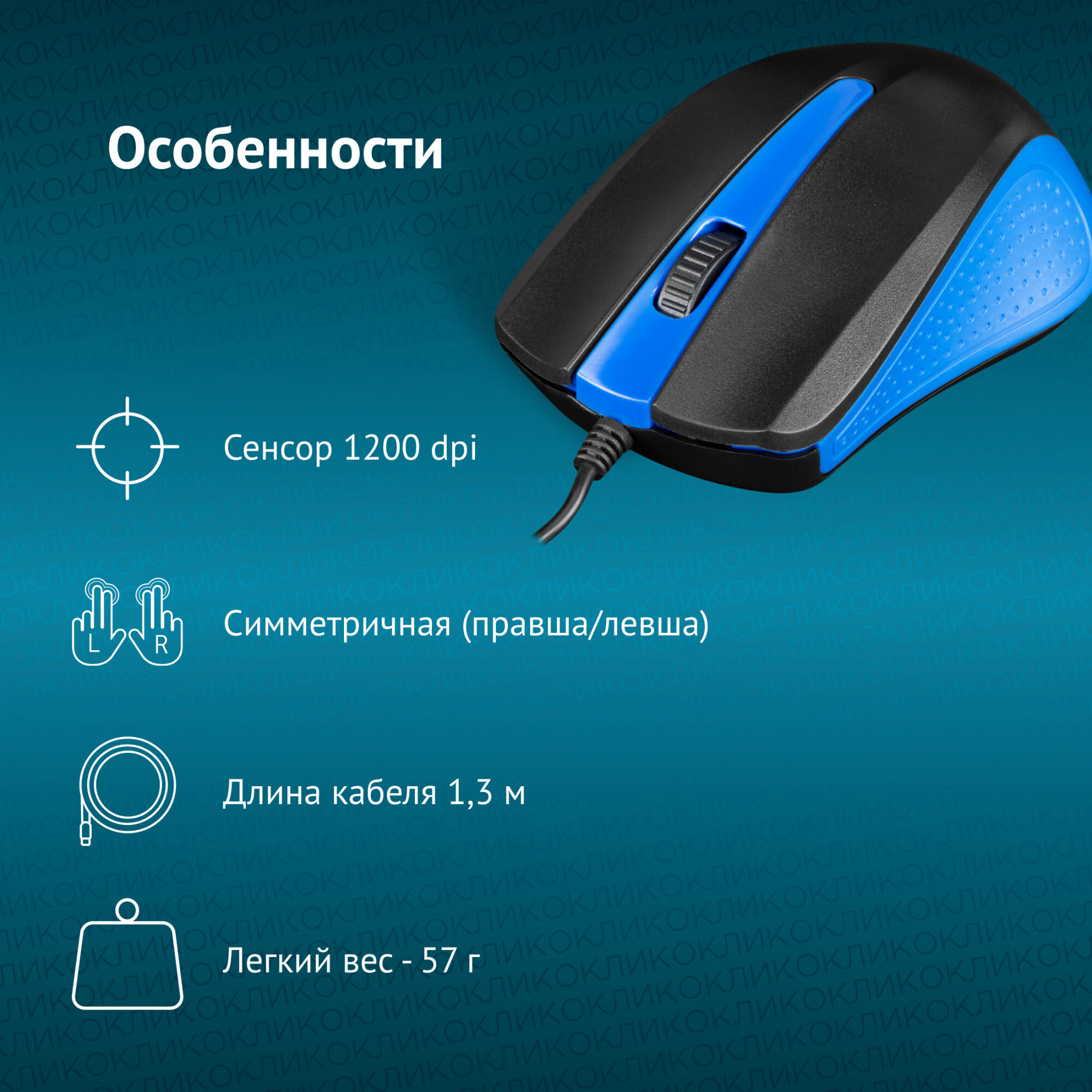 СохранитьМышь Оклик 225M черный/синий оптическая (1000dpi) USB (3but), проводная, универсальная интересное: