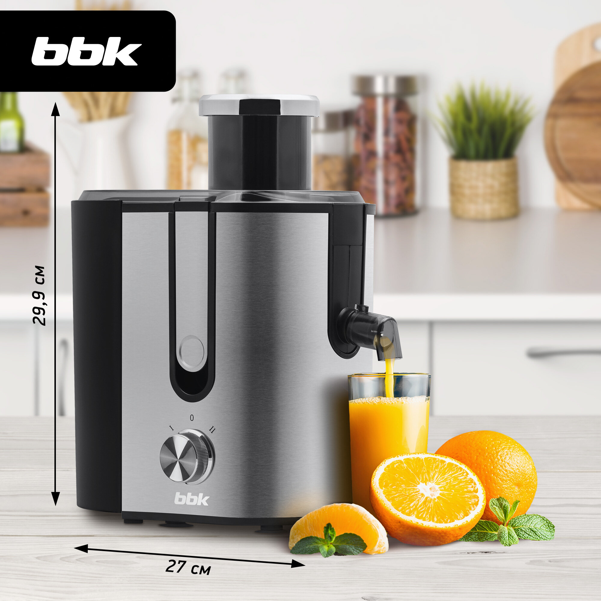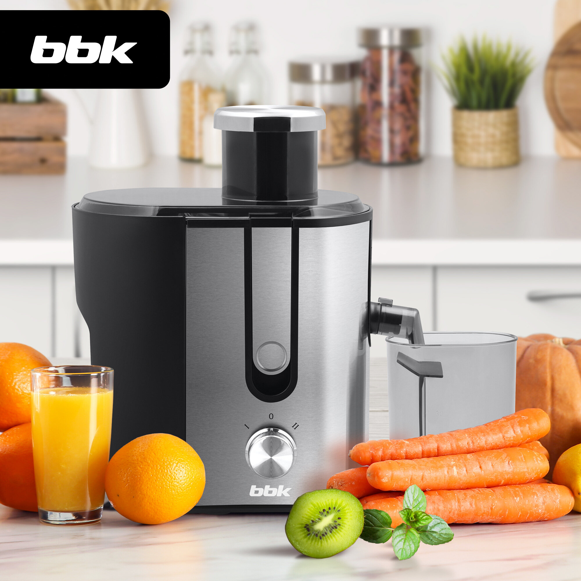 Соковыжималка BBK JC060-H02 600Вт, 2 скорости, резервуар для сока: 0.45 л, плавный запуск двигателя, черный/металлик