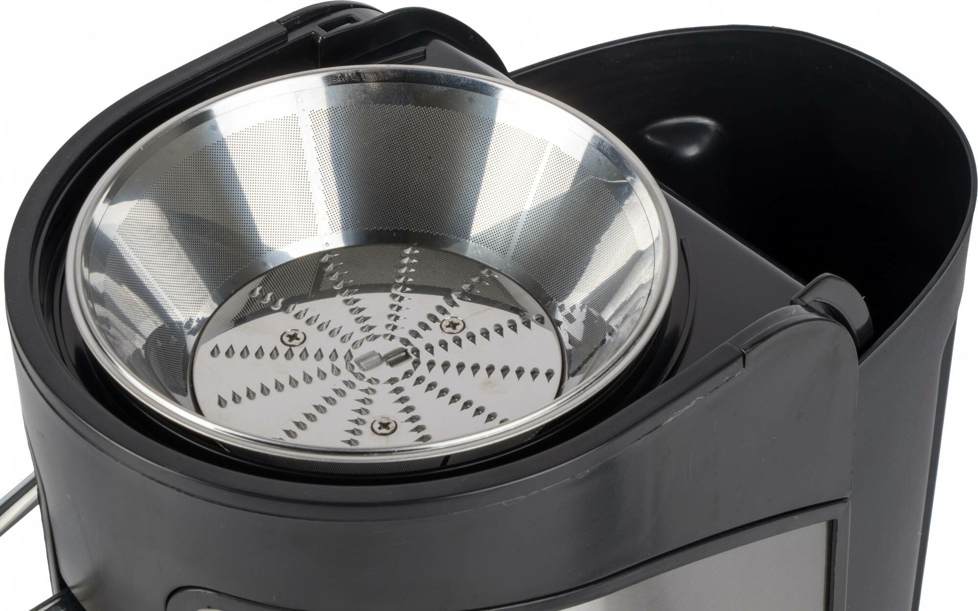 | Плюсы: | Тщательно выжимает сок, большой контейнер для жмыха |