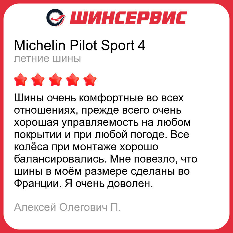 | Отзыв: | Катал ПС 2, ПС 3 и вот теперь ПС 4)) Начиная с ПС 3 Мишлен вывел их в класс пониже, зато в дождь стало лучше. |