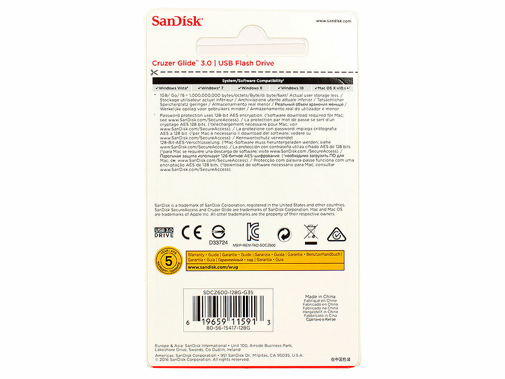 СохранитьФлеш-диск SanDisk Cruzer Glide 128Gb USB 3.0 (SDCZ600-128G-G35) интересное: