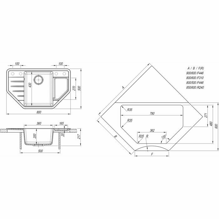 Мойка кухонная угловая Dr. Gans Рио Чёрный (25.080.C0800.407)