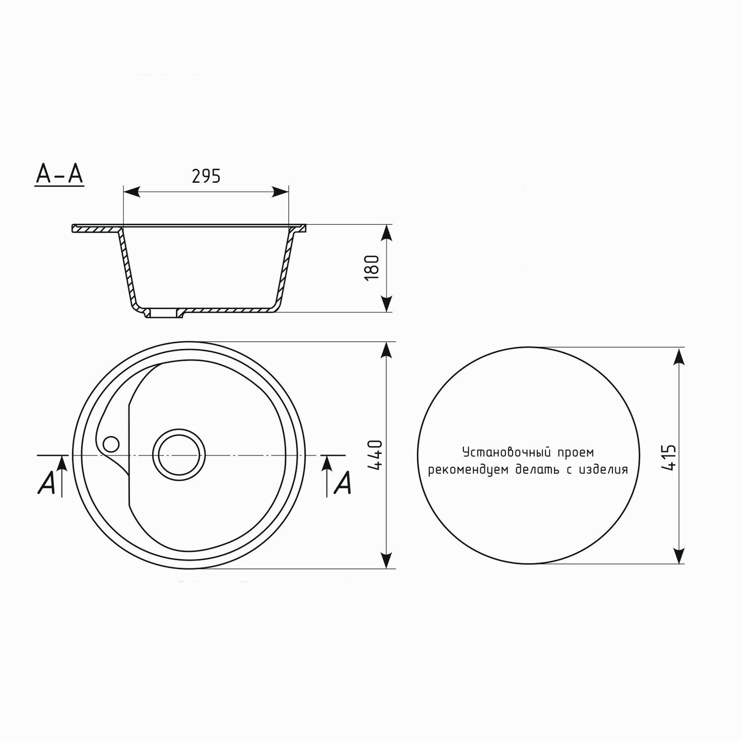 Мойкa ML-GM10 круглая, белая (331), 440мм (глуб. чаши 180)
