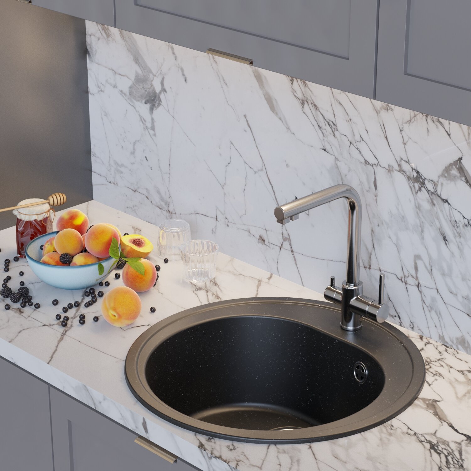 Мойка для кухни из искусственного мрамора круглая, с сифоном, MIXLINE ML-GM 11, ультра черная