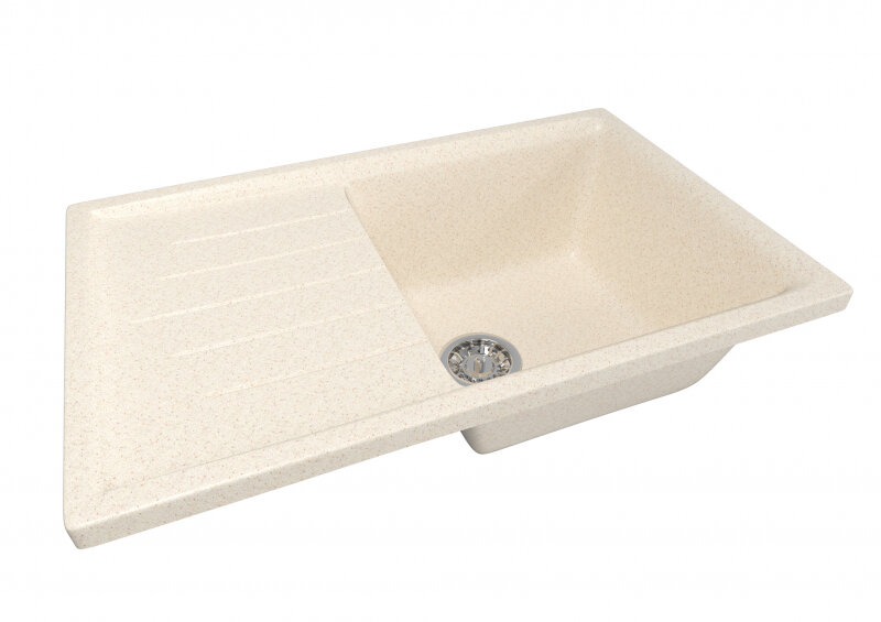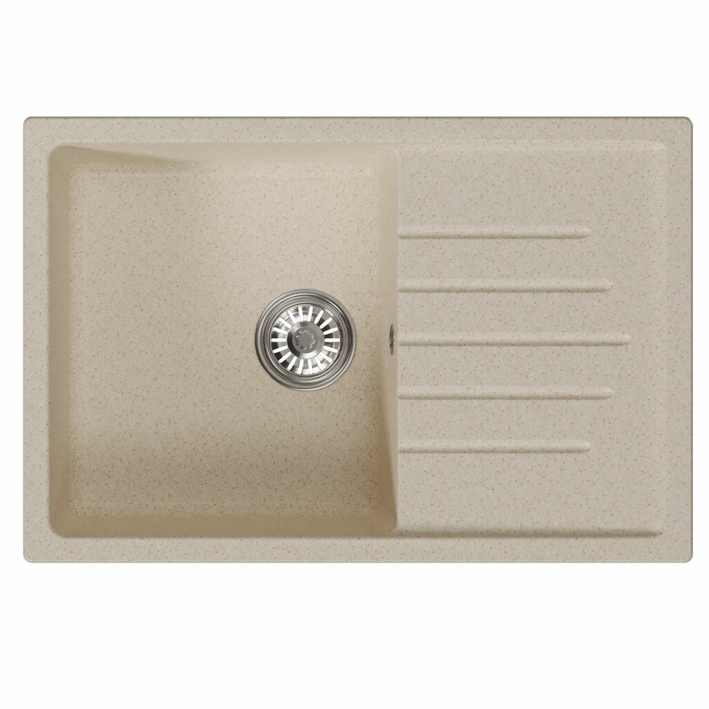 Мойка для кухни из искусственного мрамора 75х50, прямоугольная, с крылом, с сифоном, MIXLINE ML-GM 19, бежевая