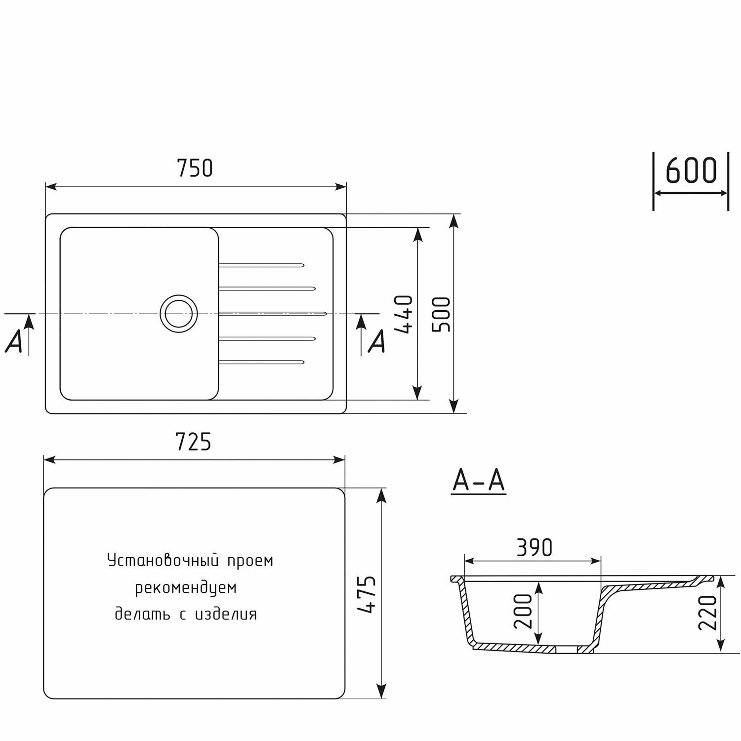 | Минусы: | нет отверстия под смеситель |