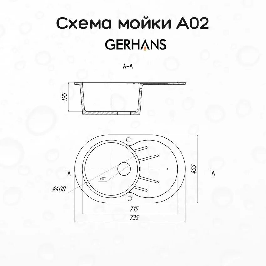 Врезная кухонная мойка 45.5 см, Gerhans A02, 25 оникс