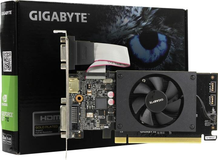 Видеокарта GIGABYTE NVIDIA GeForce GT 710, GV-N710D3-2GL, 2ГБ, DDR3, Low Profile, Ret