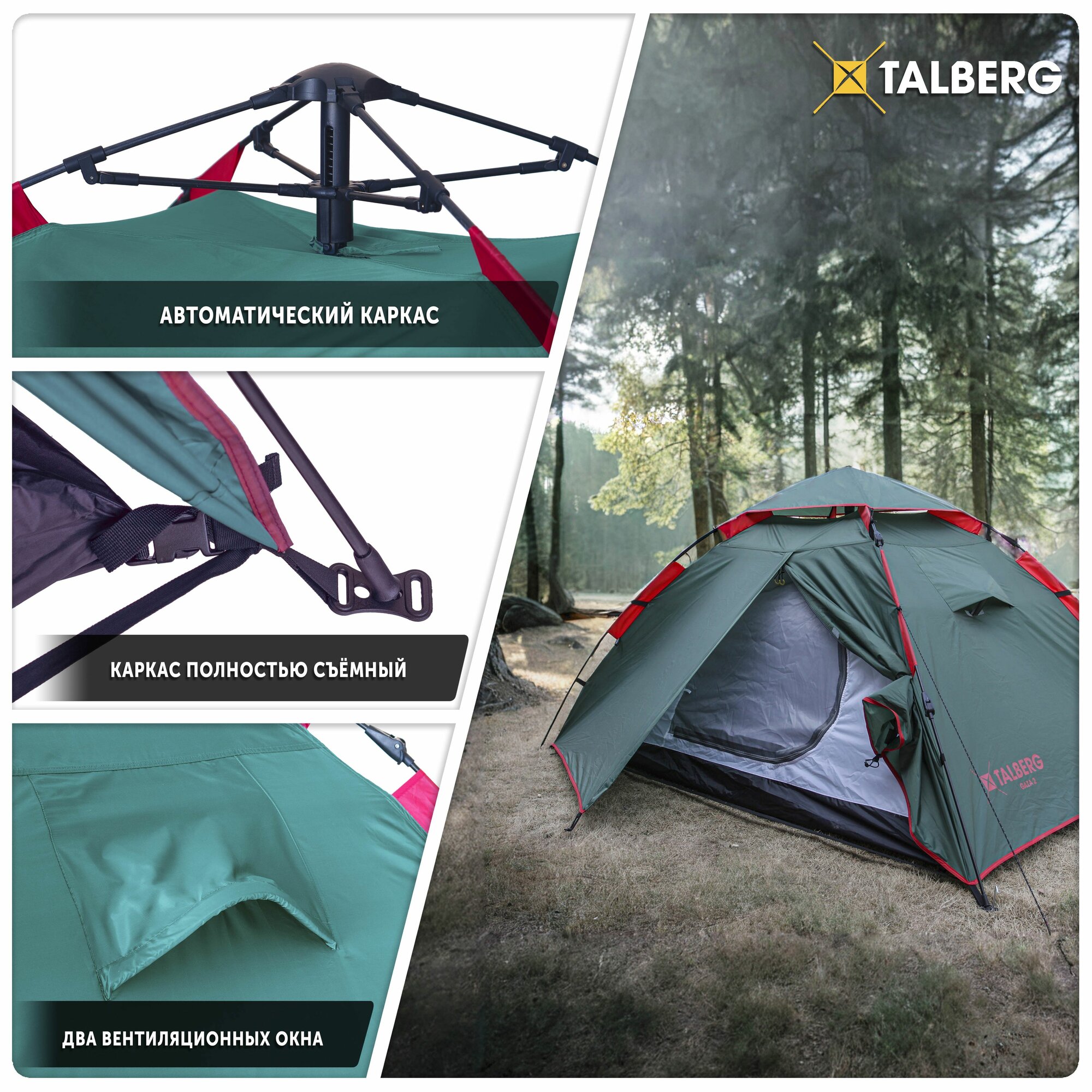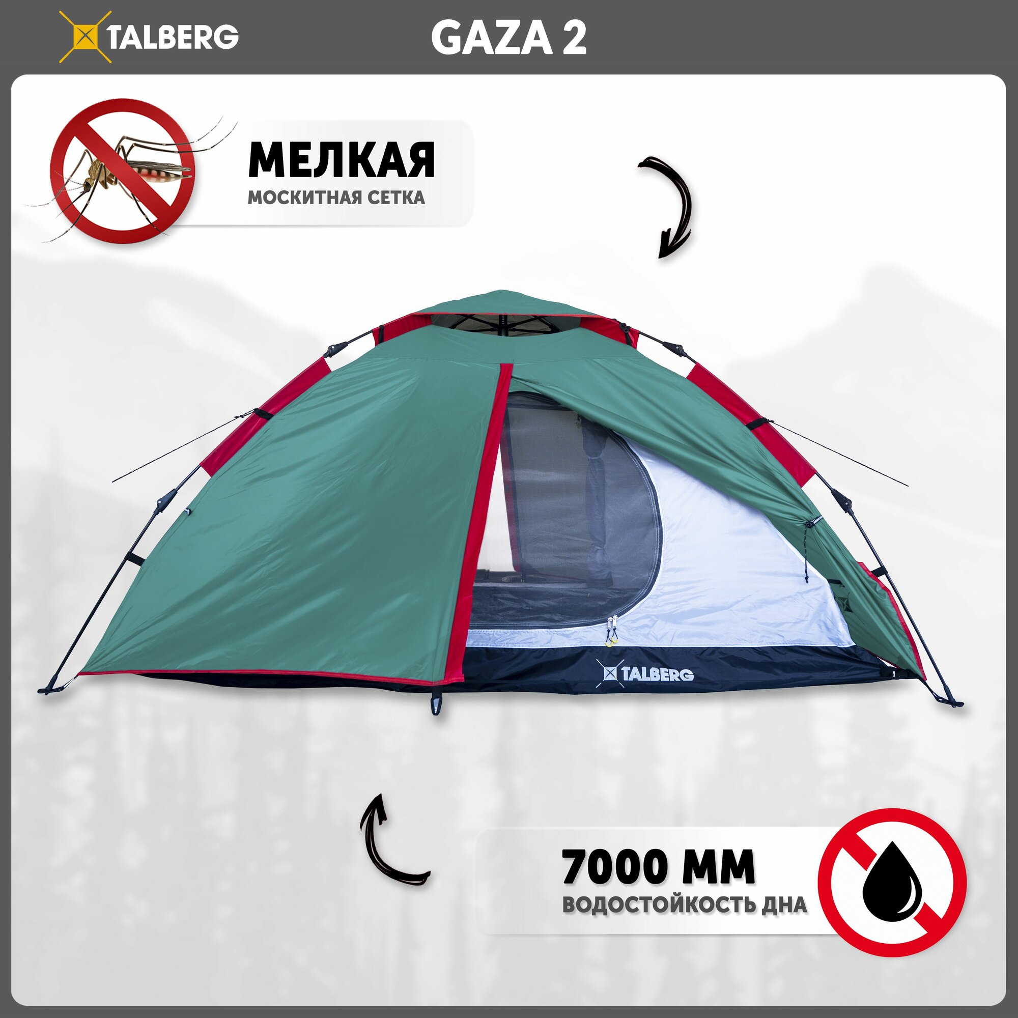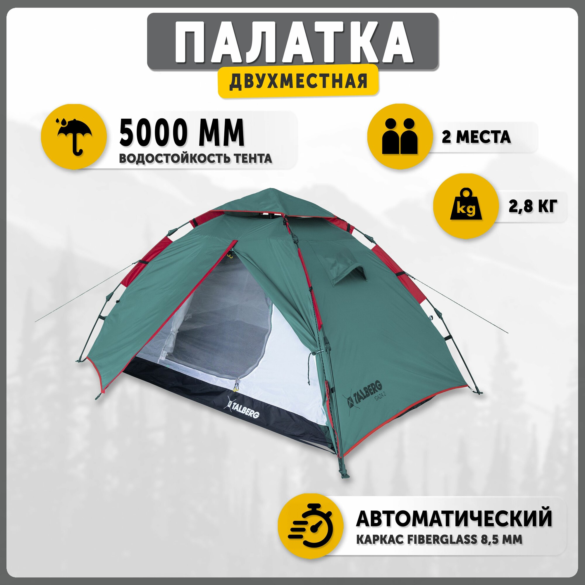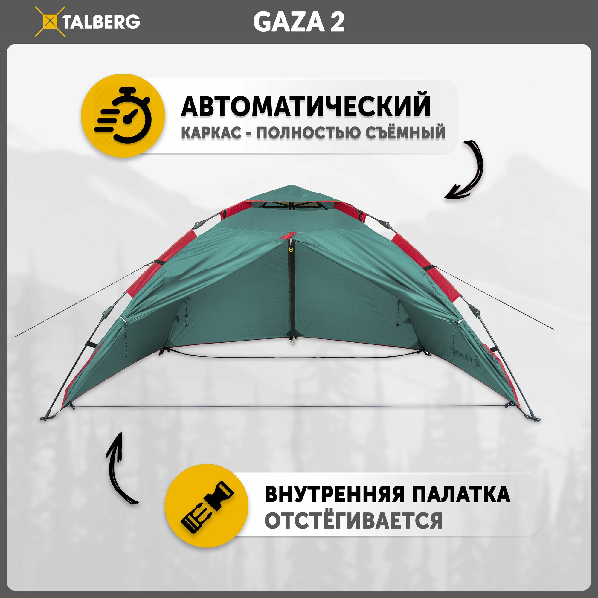 Палатка туристическая треккинговая полуавтомат Talberg GAZA 2, цвет: зелёный интересное: