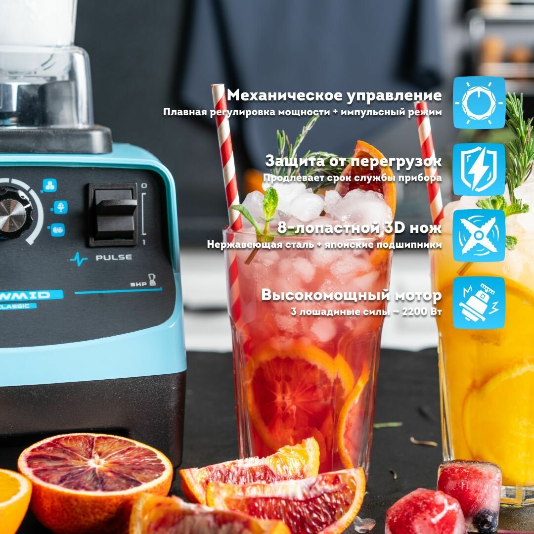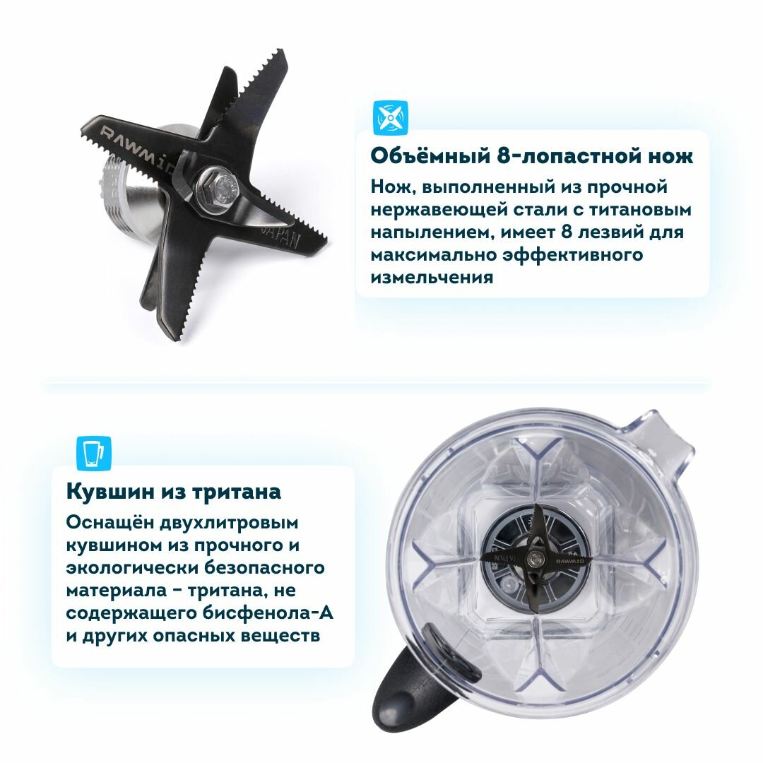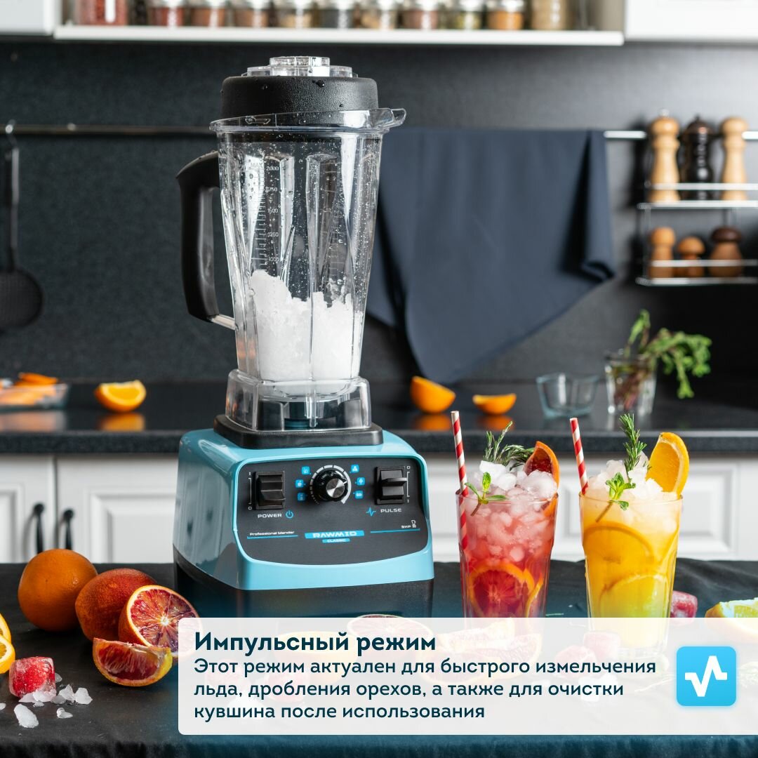 Стационарный блендер для смузи и коктейлей RAWMID Dream Classic BDC-03 BPA-FREE (цвет синий), профессиональный блендер. Расширенный комплект.