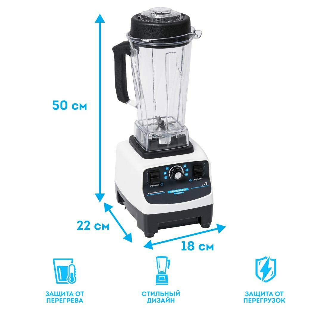 Стационарный блендер для смузи и коктейлей RAWMID Dream Classic BDC-03 BPA-FREE (цвет белый), профессиональный блендер. Расширенный комплект.