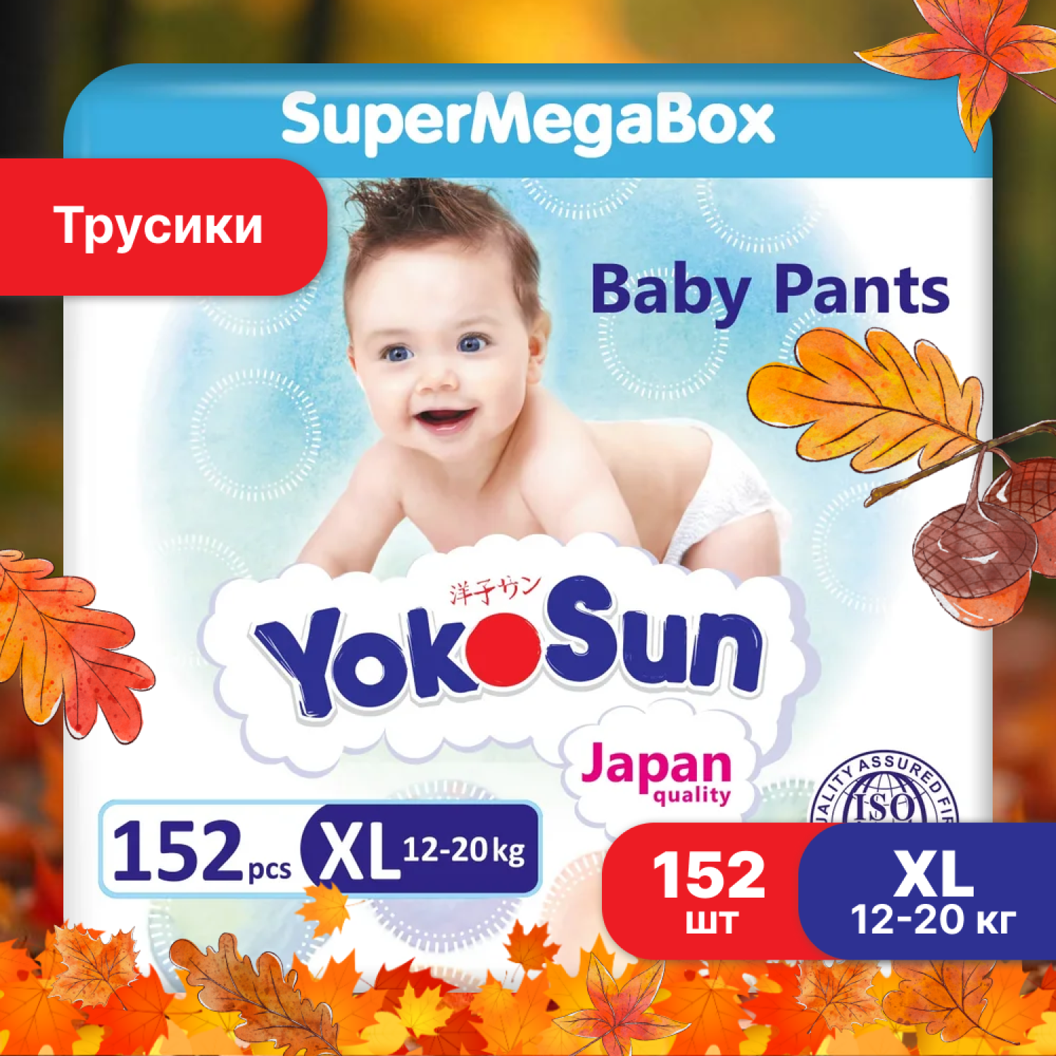 Подгузники-трусики YokoSun, 152 шт, XL (12-20 кг). (4 уп * 38 шт)